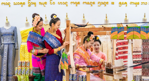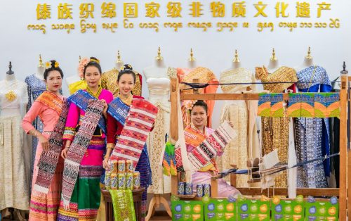 传统与创意交织的傣锦制作课上,取水少女们了解以傣锦为灵感制作的乐堡啤酒傣族文化罐及潮流周边,迎面感受潮流与传统的碰撞。在创意启发下,现场动手制作傣锦,身体力行感受傣锦传承与创新。