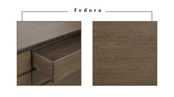 但它们都延续了Fedora系列的设计语言,拒绝平庸与繁复,以流畅的装饰性线条映衬着木纹之美,力求满足物品的分类收纳,让生活井然有序。