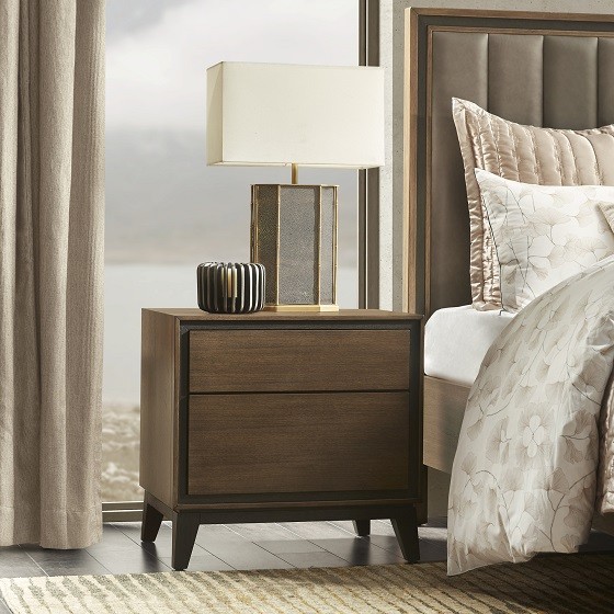 除新季上新的刀形柜脚双抽屉Fedora床头柜外,同系列还有半框形柜角单抽屉和半框形柜角多抽屉两款床头柜,为卧室的搭配提供了更多思路。