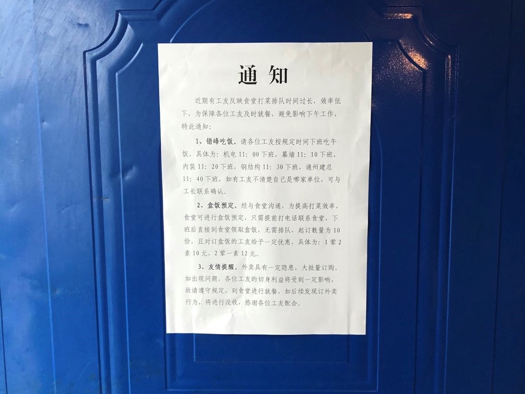 在交心谈心过程中,项目党支部副书记李昊接到不少群众反映,工友生活区食堂存在打菜效率低下、打菜时间较长问题,一定程度上影响了用餐时间,继而对正常上班时间产生了阻碍。在详细地倾听了广大群众诉求之后,项目党支部副书记李昊来到工友生活区食堂,与食堂负责人及管理员进行了谈话交流,实地查看食堂卫生状况和餐食分装情况。发现食堂确实存在打菜效率低下、打饭时间较长的问题,即刻约谈食堂负责人与厨师,出台相应措施,采用错峰就餐、提前预定等多种手段缓解了食堂就餐压力。