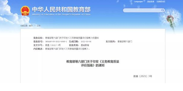 今年3月,教育部等六部门联合印发《义务教育质量评价指南》。这份文件以发展素质教育为导向,提出完善评价内容,改进评价方法,着力克服“唯分数、唯升学”倾向,促进形成良好教育生态。