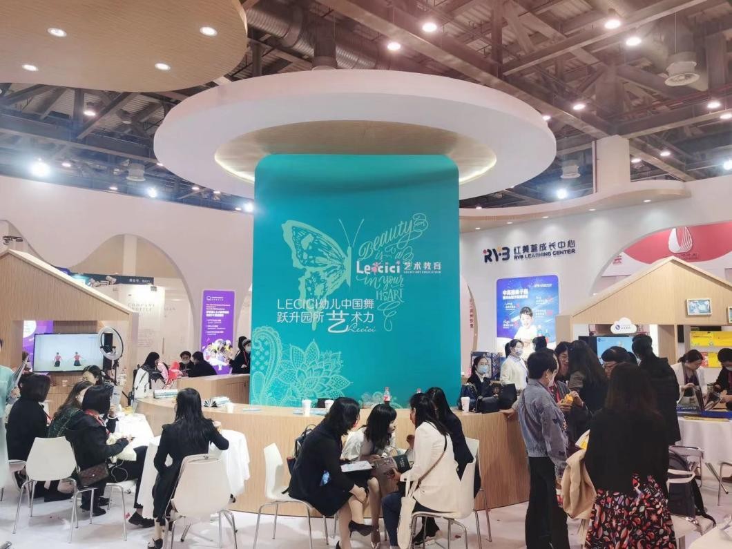 LECICI艺术教育的展台高端大气,陈设整洁美观,分区动静结合;各类标准化手册、课程视频资料、舞蹈配套服装用具……一应俱全;专业舞蹈老师现场示范课程,配合督导老师深入浅出的讲解,将LECICI艺术教育此次重磅推出的“LECICI幼儿中国舞” 课程优势展现的淋漓尽致。现场滚动播放的优异教学成果和丰富高端的演出实践活动,更是LECICI艺术教育不同于其他艺术类项目的亮点,吸引了大量参会的投资人、园长现场咨询、洽谈签单,展台人头攒动,气氛热烈。
