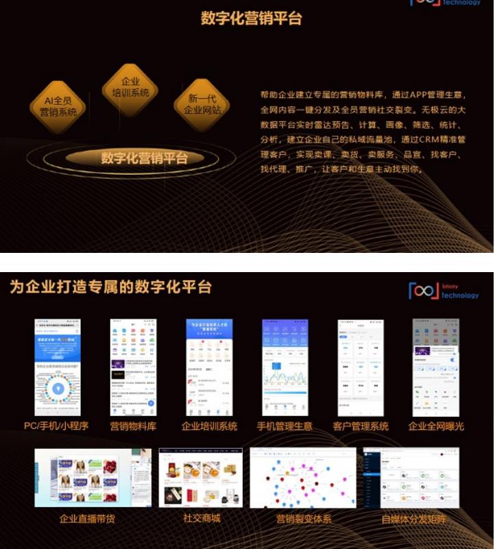 它将内容营销、名片、商城、直播、企业培训、官网和无极云的云计算和大数据相结合,打造出了拥有AI全员营销系统和企业培训系统的新一代企业网站。
