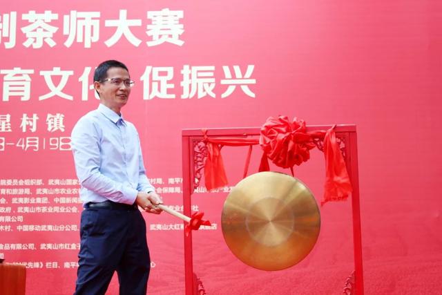 武夷山市茶业同业公会会长刘国英敲锣开启赛事