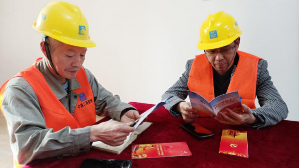 本次“半小时阅读”活动更是深入项目基层,为工人发放总书记关于安全生产重要讲话的宣传手册和党史学习教育资料。工作之余,工人们三五成群的坐在一起学习、探讨。除了阅读书籍之外,项目员工还化身红色讲解员,以视频的形式为大家讲解了红船精神、抗战精神、西柏坡精神等红色精神的内涵。