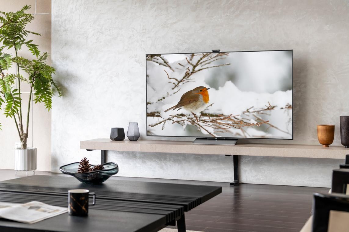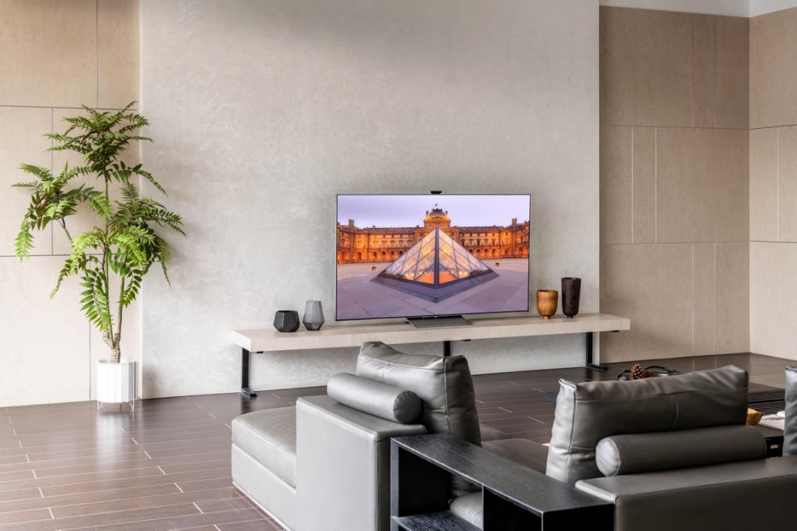 在外观上,TCL C12量子点Mini LED智屏直接采用天空全面屏设计,更好打破了传统刻板印象,营造出无边框的沉浸视觉体验。此外,TCL设计师更是以”HORIZON地平线“为设计灵感,借用简约的线条元素,轻松营造出高级而优雅的视觉美感,为家居生活带来极致美学。