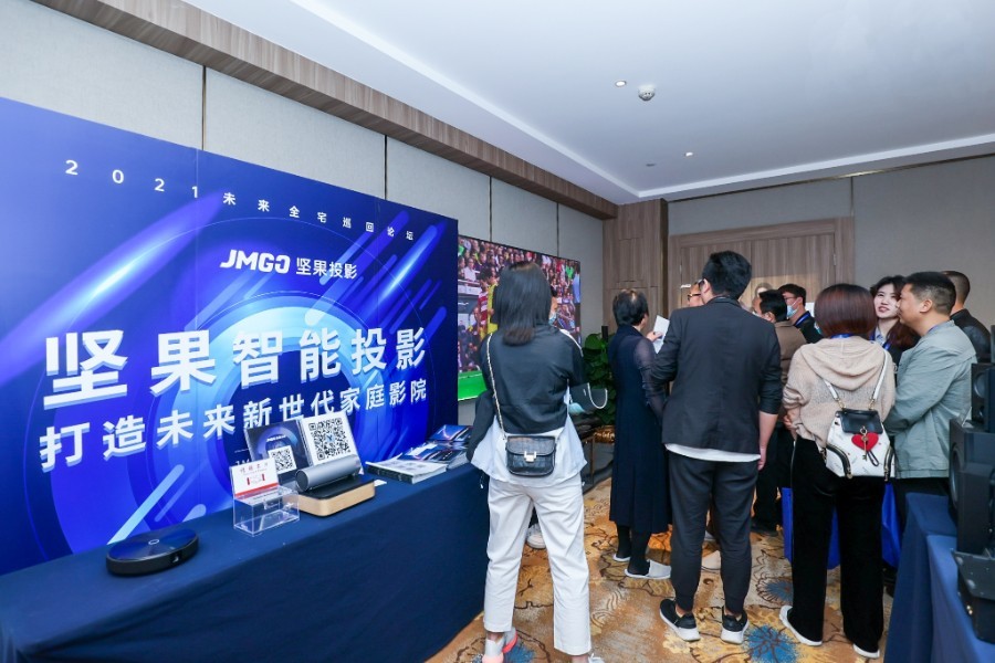 2021未来全宅巡回论坛(武汉站)于4月23日在武汉洪广大酒店隆重召开,时隔1个月,智能投影品牌JMGO坚果投影作为协办单位,再度亮相“全宅”舞台。
