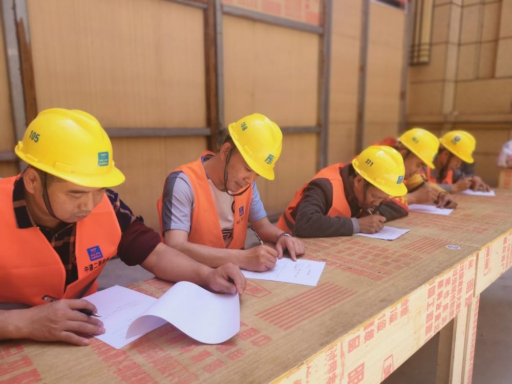 本次关爱员工健康行动以“爱岗敬业·弘扬劳动精神·助力企业高质量发展” 为主线,组织健康向上的文体活动,丰富一线员工的文化生活。活动分为六个环节:安全知识竞赛、安全防护大比拼、评选行为安全之星、党史朗诵、建设廉洁文化阵地、拔河比赛。活动前期,项目部经过层层筛选,最终选出5名工人代表参加安全知识竞赛。为强化安全意识,推进项目安全生产有序进行,知识竞赛结束后,项目部组织“安全防护大比拼”,以穿戴安全防护用具的标准和规范为依据进行评比。活动中还对本月的行为安全之星进行评选,颁发奖状,鼓励大家积极参与到安全管理工作。
