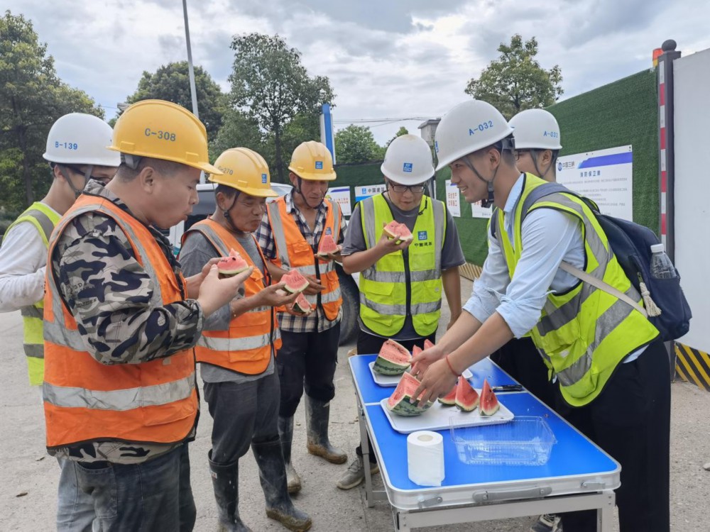为做好夏季防暑降温工作,中建五局沅江水环境综合治理项目部实行夏季错峰施工,避开中午高温时段作业,持续开展夏送清凉活动,给工友送去西瓜、藿香正气水等防暑降温物资,确保一线工友的人身安全和身心健康。(毛丹)