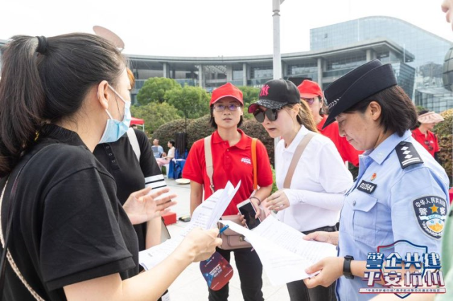杭州市公安局民警和平安志愿者共同为现场市民带来了一场形式丰富、寓教于乐,真正贴近市民的反诈宣传活动。活动现场,杭州市公安局民警以通俗易懂的脱口秀等方式,普及反诈防骗知识。平安志愿者协会浙江地区分会志愿者们向周边社区居民发放防范非法集资、防范金融诈骗等宣传资料,协助居民下载安装“国家反诈中心APP”。