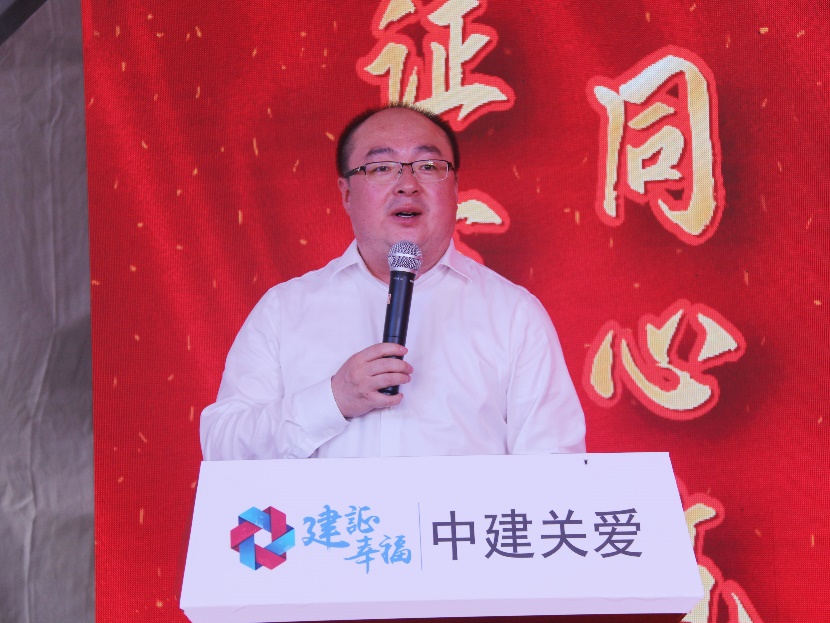 中建八局四公司副总经理刘鹏在致辞中指出,要持续做好工友关爱帮扶,打造幸福品牌,建设和谐项目“大家庭”;要持续做好工友安全教育及安全防护,打造平安工地,建设安全项目“大家庭”;要持续做好留守儿童公益关爱活动,打造关爱品牌,建设温暖社会“大家庭”。