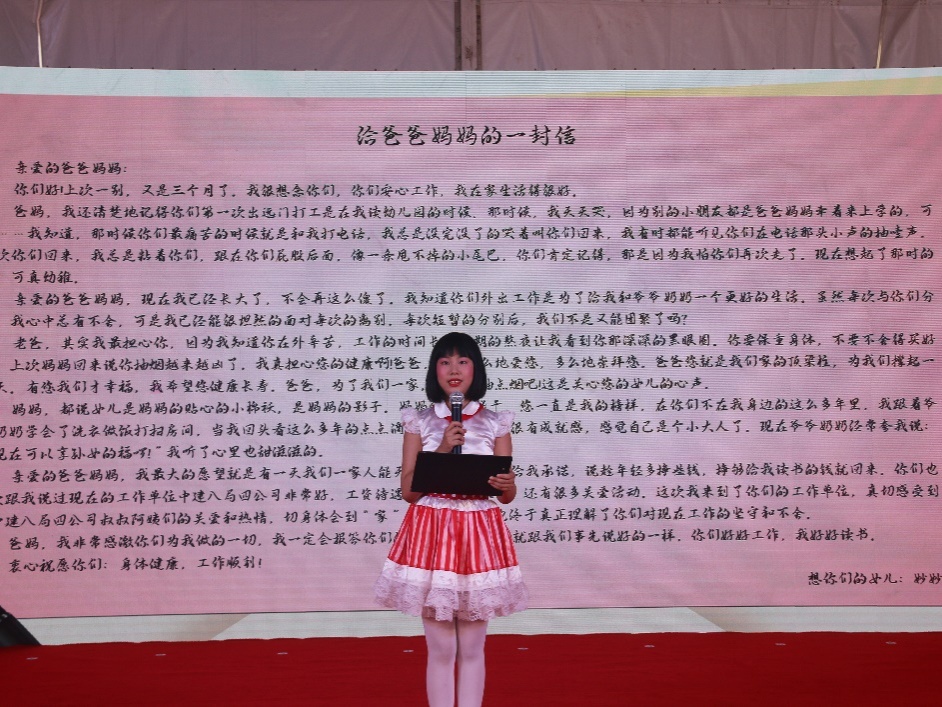 留守儿童妙妙宣读《写给爸爸妈妈的一封信》