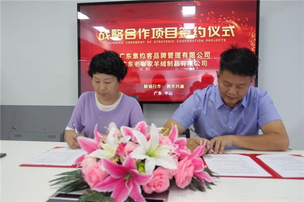 7月12日,广东老崔家羊绒制品有限公司(以下简称老崔家公司)与广东集约客品牌管理有限公司(以下简称集约客公司)在广东省中山市小榄镇集约客企业联盟大厦,举行启动老崔家羊绒制品香港上市签约仪式;双方共同努力,快速推进“老崔家”明年年初在香港上市进程,并建立互利共赢、长期稳定的合作关系。老崔家公司董事长潘淑君、与集约客公司董事长廖代春出席签约仪式。