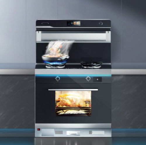 森歌i8智能蒸烤集成灶,其集成了油烟机、燃气灶、蒸箱、烤箱、置物台、0.9 米橱柜、消毒柜、酸奶机、保温箱、炸锅、蒸蛋器、面包机、炖锅、电饭煲共14种功能,而且仅需1平米空间,不管是小厨房,还是开放式厨房,均实现了空间利用的最大化。