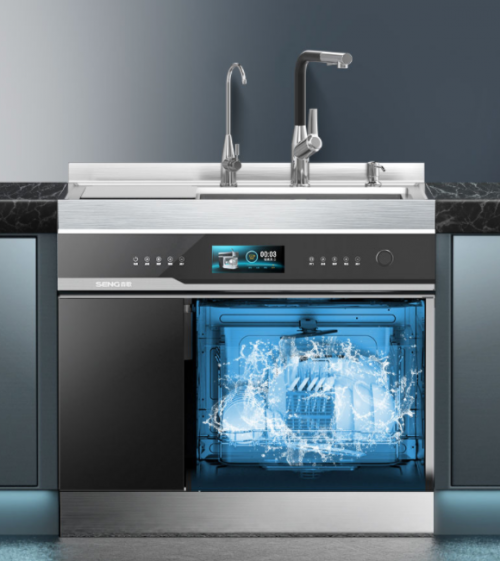 此外,再搭配上森歌u8洗碗机,即可一站式解决厨房“净洗”需求。其集洗碗机、消毒柜、橱柜、手工水槽、果蔬机、万向龙头、沥水帘、皂液器、净水器9项功能于一体,同样是在寸金寸土的厨房空间里,以最少占地面积实现了更多的功能。