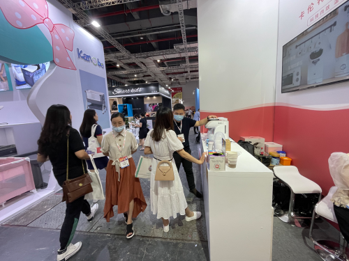 展会现场卡伦特母婴携黑科技产品智能温控冲奶机及丰富的母婴小电器产品吸引了众多宾客参观,其中自动冲奶机速沸速温专利技术让现场客户刮目相看,称赞连连!