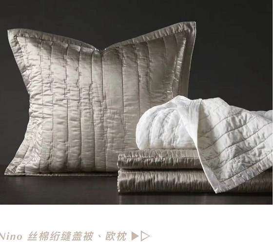独特的绗缝走线延伸出崎岖的脉络,灵巧地打破了直线的单调,使得装饰性有所提升。而由桑蚕丝和棉交织而成的触感绵滑亲肤,使Nino也可以用来作夏天的薄盖被。