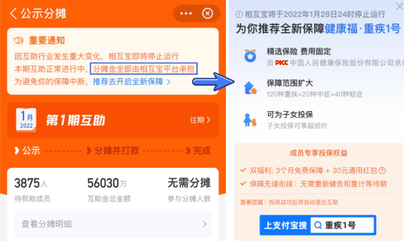 跟之前不同的是,公示特别提醒:“分摊金全部由相互宝平台承担”。