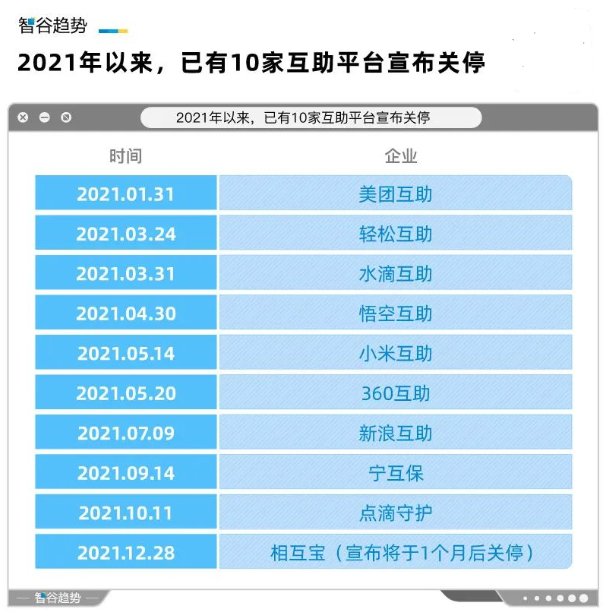 类似的公示未来还将有两次,之后相互宝将按计划彻底关停。这场发轫于2011年,几乎所有中国知名互联网企业都下场参与的互助行动,就此宣告结束。