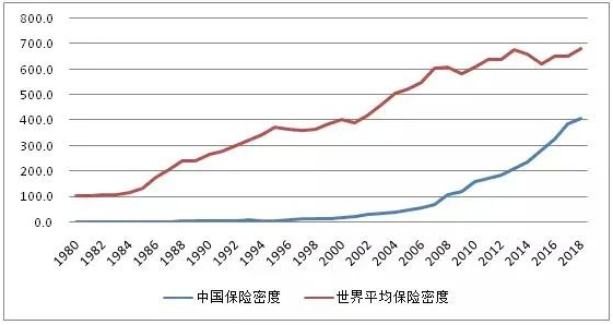 在中国经济稳居世界第二,人均GDP站上10000美元之后,用来衡量中国社会保障的一个重要数据——保险密度也攀升到了400美元。