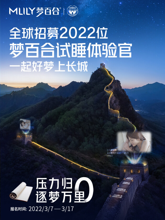 面对国民级的睡眠健康难题,2022年3月,梦百合联手长城IP共同打造第六季321全民试睡节,实力推动0压理念出圈,让0压睡眠成为更多人解决睡眠难题的答案。