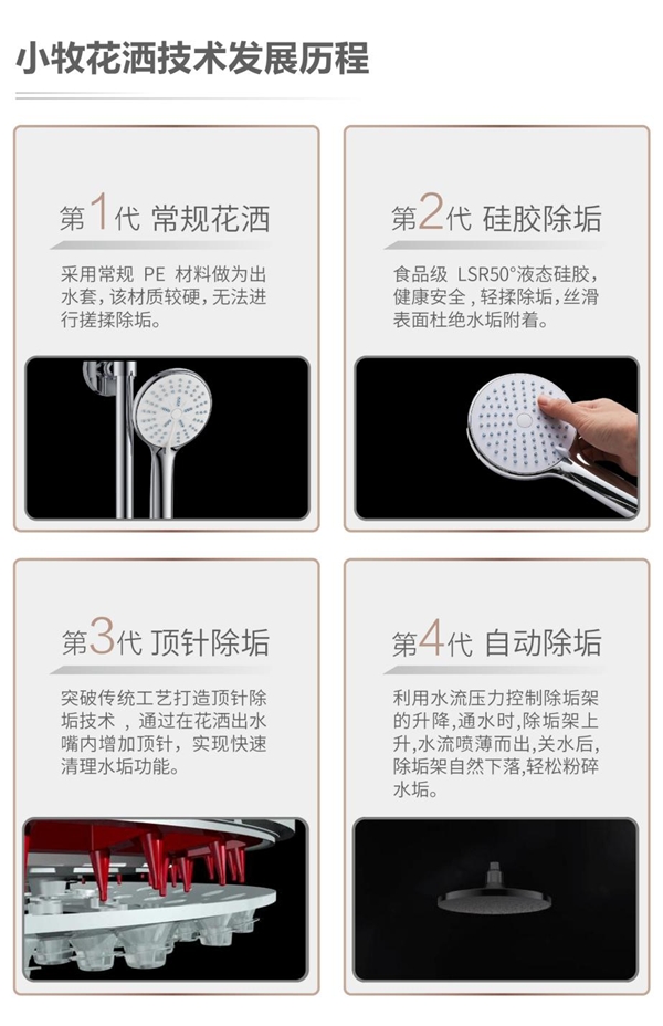 经过多年研发创新,小牧的花洒已从第1代迭代升级至第4代,针对高端花洒提供10年质保、10年保修的“10年双保无忧”服务,让人们以无顾虑、更轻盈的状态去拥抱生活。
