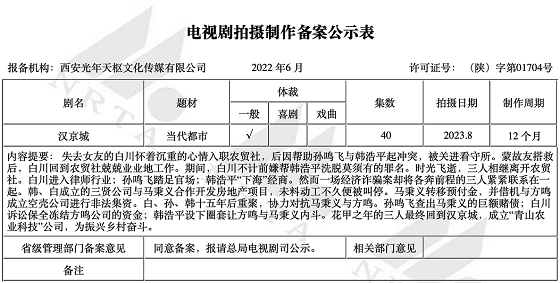 近日,电视连续剧《汉京城》获得国家广播电视总局备案,剧组筹备工作正在紧张有序进行中。该剧由陕西作家刘林海创作的长篇同名小说改编而成,将为人们展示一幅广阔而又壮丽的画面。从农村到城市,从官场到市井,行业贯穿工农商学兵。各种角色穿插并行,上演一幕幕人间大戏。作品以健康向上的理念,讴歌改革开放的伟大业绩。