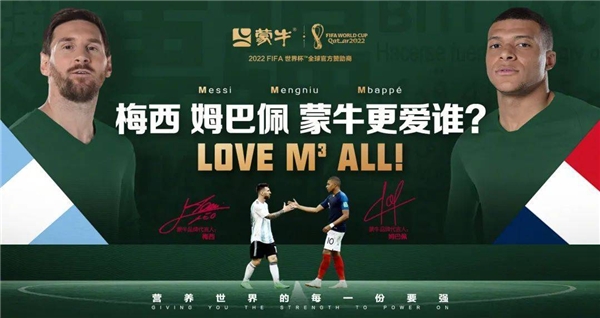 “我们认为牛奶和体育存在天然的关联性,都能给人们带来健康与快乐,”李鹏程说,围绕契合的品牌理念,蒙牛长期不懈地开拓体育资源。在卡塔尔世界杯上,随着蒙牛品牌代言人梅西和姆巴佩会师决赛,“M三次方”闪耀全场,而通过1+1>2的“梅西+姆巴佩”营销“组合拳”,蒙牛也为乳业与足球合作设下天花板,让此后蒙牛与两位巨星的营销合作,更加游刃有余。