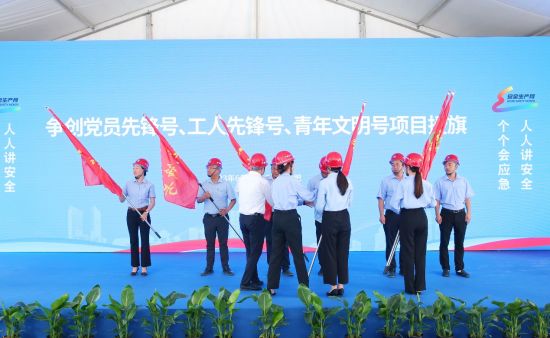 安徽省总工会劳动和经济工作部部长邱波,安徽省总工会劳动和经济工作部一级主任科员徐岳鹏,安徽省建设建材工会(厅文明办)四级调研员邱亮等领导出席启动仪式。安徽分公司领导班子、副三总师、各部门负责人,各联合党支部书记、各项目经理、安全总监,以及职工、工友代表参加本次活动。