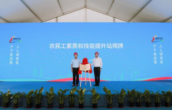 为全面提升产业工人专业技能,安徽省建设建材工会(厅文明办)四级调研员邱亮和安徽分公司党委副书记、纪委书记、工会主席黄橙共同为合肥林店家园项目农民工素质和技能提升站揭牌,助力一线工友提升专业技能水平,实现高质量就业、稳定就业,更好地融入城市建设、服务城市发展。