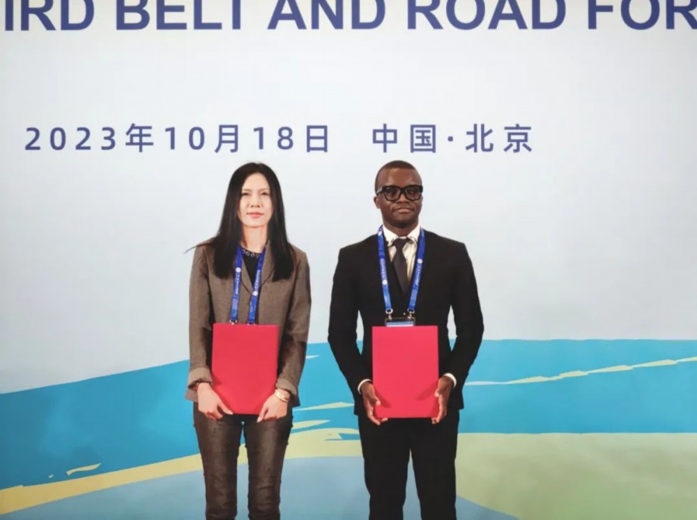 10月18日,四维图新CMO兼董秘孟庆昕与中非商会代表门度参加“一带一路”数字经济高级别论坛签约仪式