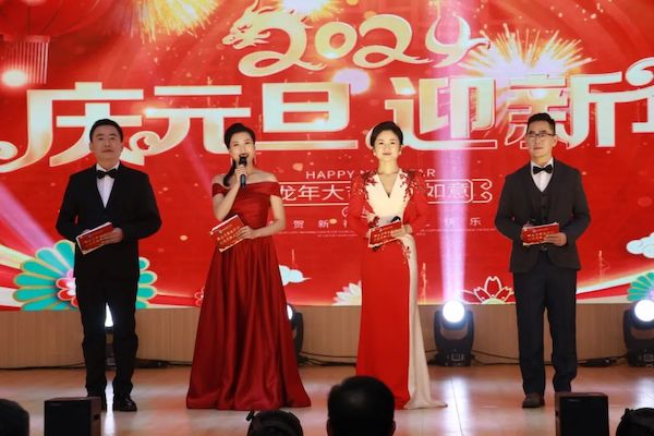 本次联欢会的主持阵容较往年发生了变化,此次学校特别邀请了学校校友、济阳融媒体中心主持人王旋旋、刘晓玮的加入,与教师刘桂昌、沈力联袂主持。