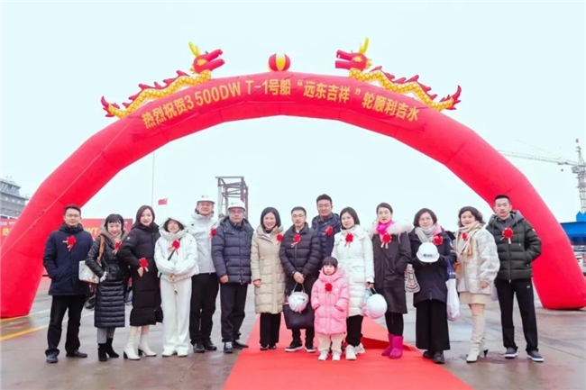 2024年1月20日,湖北黄冈长江码头边,“远东吉祥号”上彩旗纷飞,橙色船身在滔滔江水的映衬下,显得格外耀眼。船舶生产商——惠州华亿荣盛船务有限公司董事长刘晓昂、武汉航通船舶设计有限公司董事长邵敏和一众复旦大学EMBA校友站在长江边,共同见证“远东吉祥号”顺利下水,不久后,这艘新船将从长江口驶出,正式开始它的航海征程。
