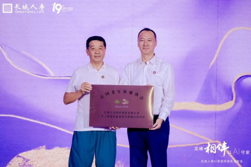 发布会现场,中国老年保健协会向长城人寿颁授“应用干细胞抗衰老研究课题”官方合作单位牌匾,标志着双方将共同开展干细胞抗衰老领域的科学探索。